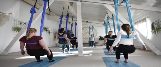 Beim DANA® AERIAL YOGA geht es um einen spielerischen Umgang mit der Schwerkraft.
